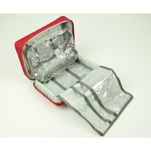 Внутренние стенки аптечки выполнены из металлизированного материала. Благодаря этому аптечка работает как термосумка. Какое-то время температура находящихся внутри медикаментов останется неизменной.