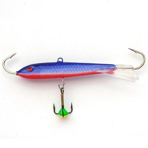 Порой щука или судак реагируют только на крупные приманки, активно перемещающиеся в придонном слое. Эти, достаточно крупные балансиры длиной 90 мм, облавливают большую площадь под лункой и издалека привлекают хищника. Не забывайте, что чем крупнее приманка, тем большая пауза нужна ей между взмахами удилища.