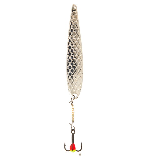 Насечки в виде чешуи на блесне дополнительно привлекают внимание хищника.