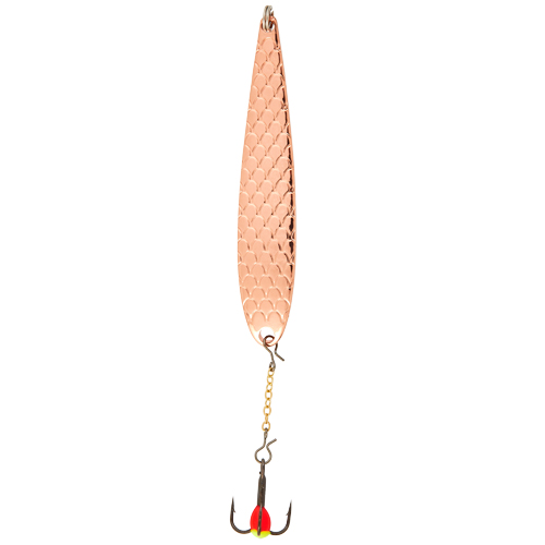 Насечки в виде чешуи на блесне дополнительно привлекают внимание хищника.