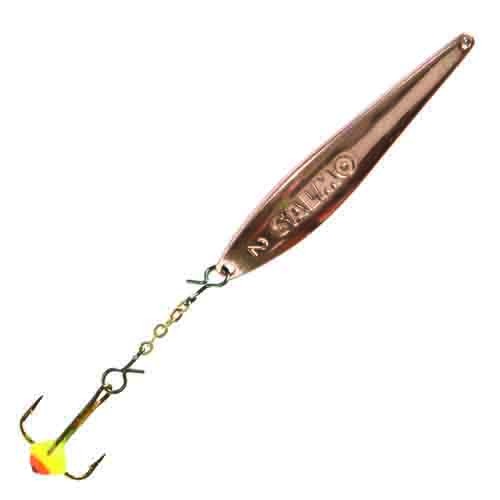 Приманка конструктивно не отличается от блесны Lucky John «S-2-Z» (артикул 82751), только вместо одинарного крючка установлен тройник, украшенный цветной пластиковой капелькой. Такая комплектация очень выручает при активном клеве хищника.