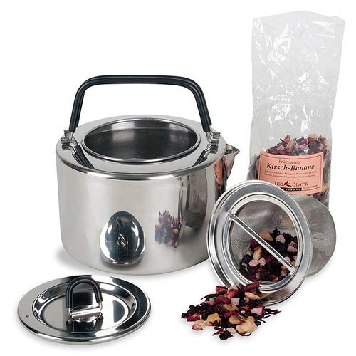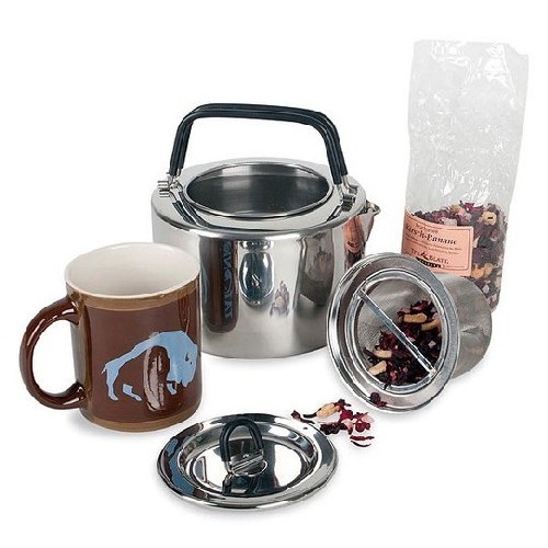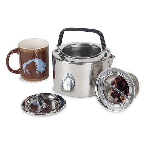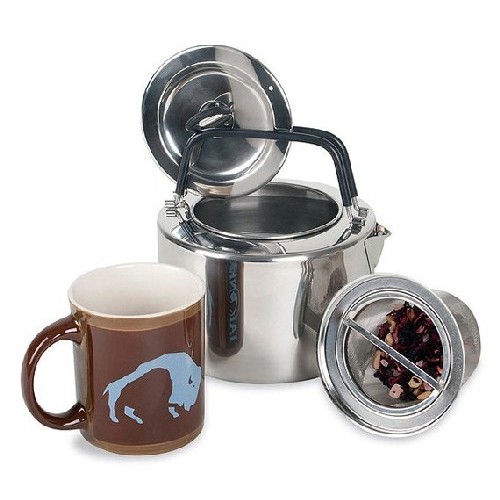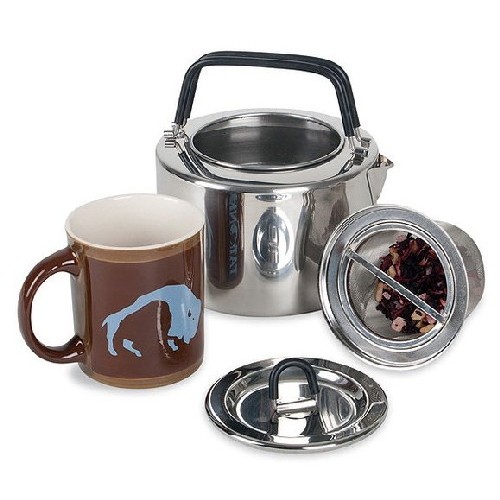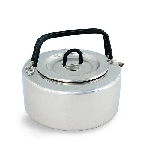 Чайник из нержавеющей стали с термоизолированными ручками и компактным дизайном. Замечательно подходит для использования дома и на выезде.