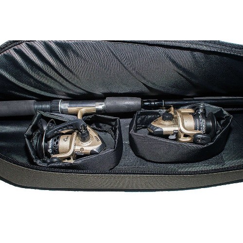 Сохранность катушек обеспечивают дополнительные карманы, положение которых может быть отрегулировано под конкретную модель спининга (они крепятся к дну чехла с помощью липы).