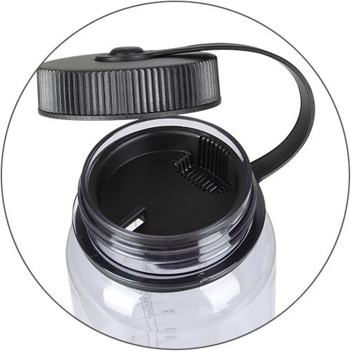 В комплекте съемная пластиковая вставка для удобного питья без расплескивания через широкую горловину. Вставка имеет зарешеченную прорезь для выхода жидкости и петлю для ухватывания пальцами при извлечении.