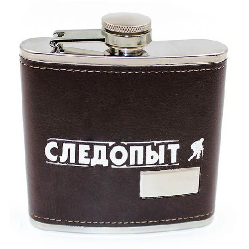 Фляжки и рюмки «Следопыт» - представлены в широкой линейке объёмов и изготовлены из нержавеющей стали с кожаной обшивкой. Имеют очень компактные размеры: они занимают совсем немного места в вашем кармане, сумке или рюкзаке.