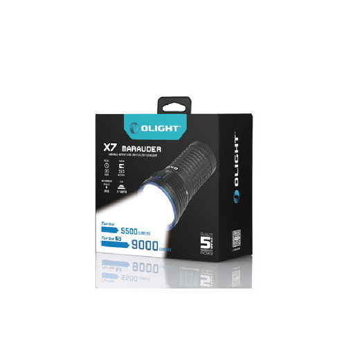 Olight X7 Marauder NW выполнен в цельнометаллическом корпусе из авиационного алюминия с анодированным покрытием, питается от четырех аккумуляторов 18650. Дальность светового потока составляет 313 метра с интенсивностью светового пучка 24,500 Candela. Работает фонарь от четырех Lo-ion аккумуляторов формата 18650 3,7 В.