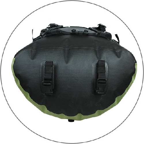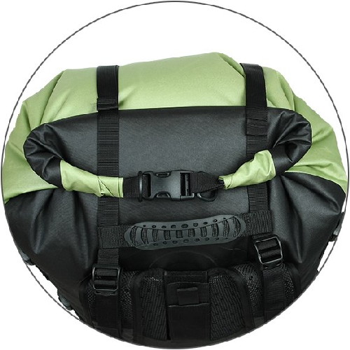 - Вход в основной объем закрывается скруткой, как на классических гермомешках, что обеспечивает полную герметичность рюкзака