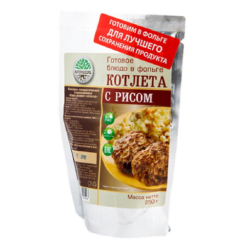 Готовое блюдо Кронидов Каша рисовая с котлетой