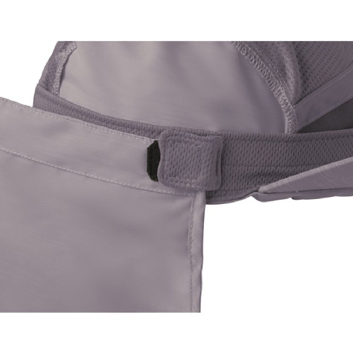 Широкий козырек защищает лицо и глаза, а длинный съемный отворот закрывает шею от вредного ультрафиолета.