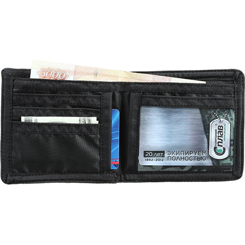Небольшой кошелёк в открытом состоянии имеет размер 22×10 см. Изготовлен из материала Polyester 600D.