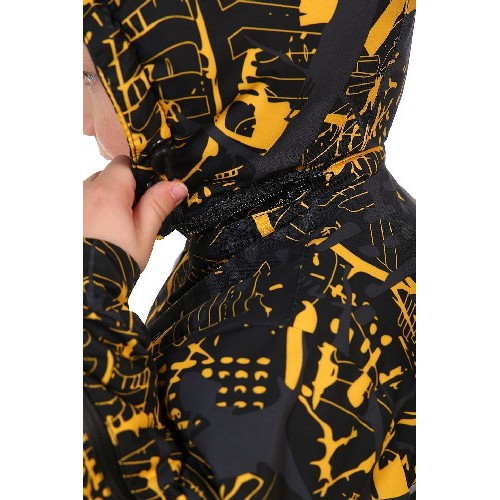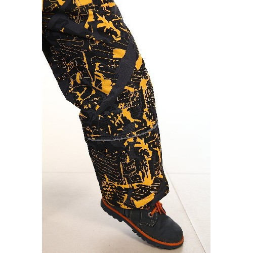 Полукомбинезон с застежкой на молнию, усилен наколенниками. Имеются 2-а накладных кармана, утепленные полибрушетом. Полукомбинезон регулируется по росту на подтяжках с пластиковой фурнитурой. В поясе утяжка.