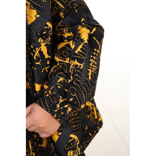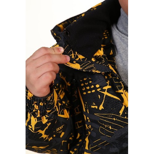 Куртка свободного кроя с застежкой на молнию с ветрозащитной планкой. Планка куртки на кнопках. Низ куртки утягивается резинкой с фиксаторами. На куртке имеются 7-мь карманов, из которых: 2-а нагрудных прорезных кармана, 2-а нижних прорезных кармана, 2-а внутренних кармана и один карман на левом рукаве под ски-пасс или для проездного билета. Карманы утепленные изнутри полибрушетом и застегиваются на водонепроницаемые молнии. Капюшон куртки съемный на молнии. Капюшон регулируется по объему резинкой с фиксаторами. Воротник - стойка, изнутри выполнен из полибрушета. На куртке в верхней зоне молнии имеется планка, огибающая замок молнии, для исключения касания застежки шеи и подбородка. Манжеты на рукавах прошитые на резинке.