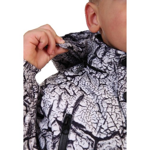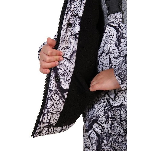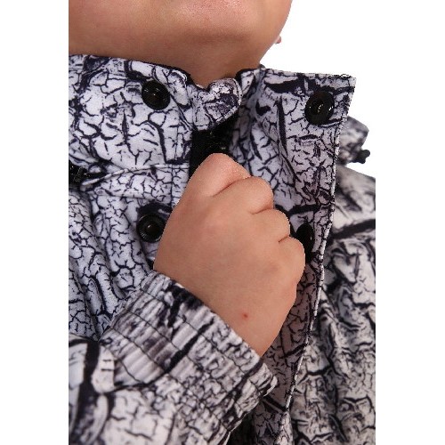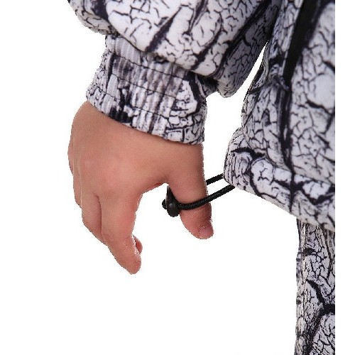 Куртка свободного кроя с застежкой на молнию с ветрозащитной планкой. Планка куртки на кнопках. Низ куртки утягивается резинкой с фиксаторами. На куртке имеются 7-мь карманов, из которых: 2-а нагрудных прорезных кармана, 2-а нижних прорезных кармана, 2-а внутренних кармана и один карман на левом рукаве под ски-пасс или для проездного билета. Карманы утепленные изнутри полибрушетом и застегиваются на водонепроницаемые молнии. Капюшон куртки съемный на молнии. Капюшон регулируется по объему резинкой с фиксаторами. Воротник - стойка, изнутри выполнен из полибрушета. На куртке в верхней зоне молнии имеется планка, огибающая замок молнии, для исключения касания застежки шеи и подбородка. Манжеты на рукавах прошитые на резинке.