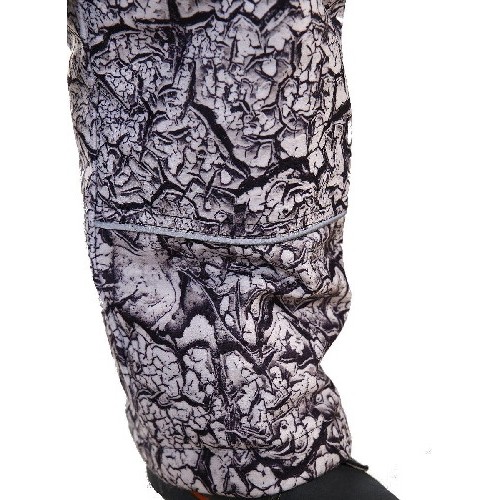 Полукомбинезон с застежкой на молнию, усилен наколенниками. Имеются 2-а накладных кармана, утепленные полибрушетом. Полукомбинезон регулируется по росту на подтяжках с пластиковой фурнитурой. В поясе утяжка.