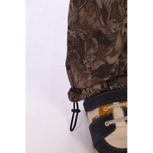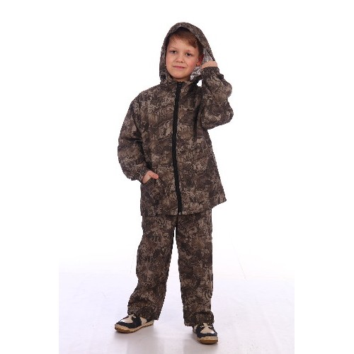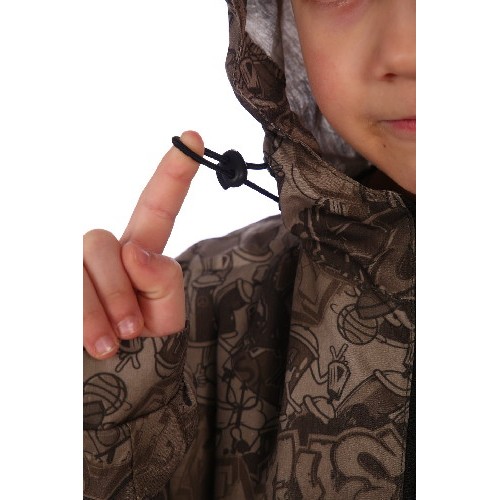 Куртка на молнии, свободного кроя, имеет 2 накладных кармана и капюшон, который регулируется резинкой с фиксаторами. Низ куртки и брюк с утяжкой.