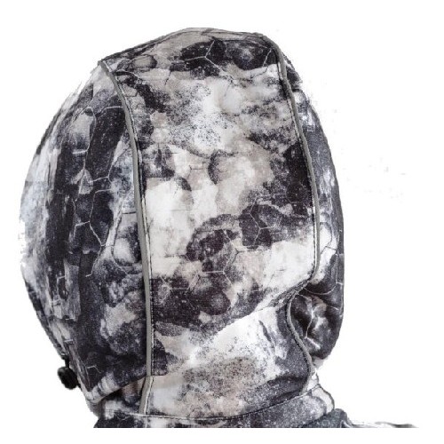 Съемный капюшон на молнии, регулируется резинкой с фиксаторами. Воротник-стойка, выполнен из полибрушета. На куртке имеется элемент "флэп" - это планка огибающая замок молнии, сделано это для того, чтобы застежка не касалась шеи и подбородка. Манжеты на рукавах на резинке. В куртке используется двойной слой синтепона (150+150) и полибрушет.