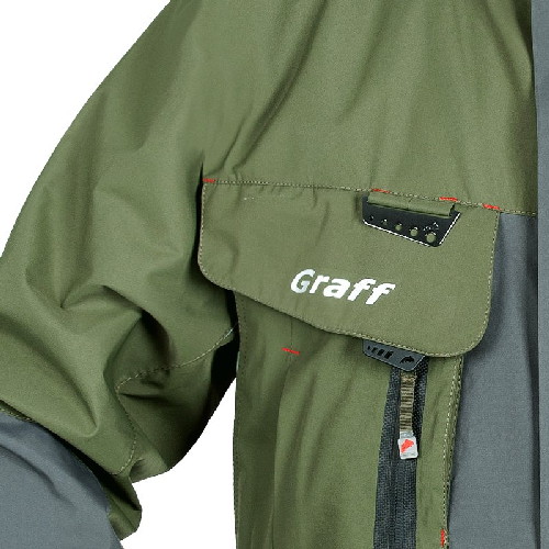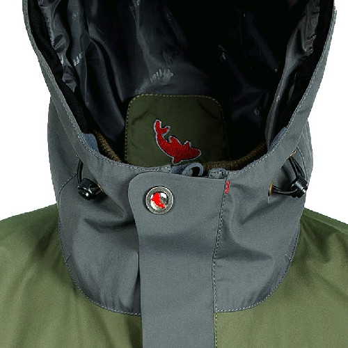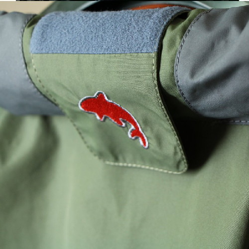 Куртка также оснащена губкой на липучке для приманок и другой фурнитурой для крепления рыболовных аксессуаров.