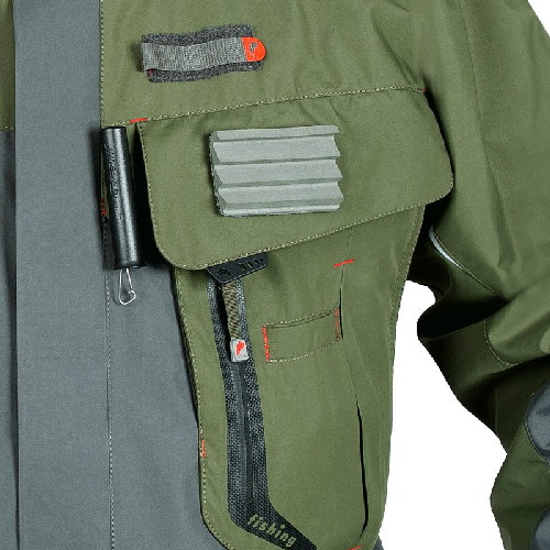 Оснащен множеством удобных внешних и внутренних карманов, продуманное расположение и размер которых обеспечивает комфорт для различных видов рыбалки.
