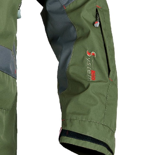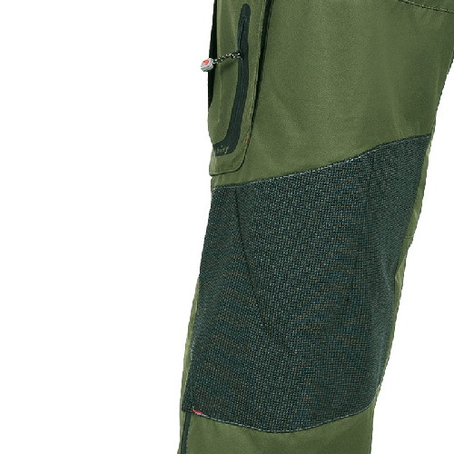 Задняя часть и колени брюк усилены износостойким материалом, имеют подтяжки и регулировки в талии и снизу.