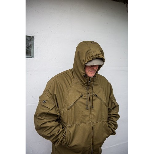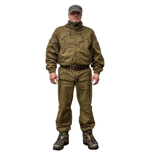 Костюм имеет достаточно свободный крой, изготовляется из палаточной ткани плотностью 270 г/м2 (100% хлопок). Пока производится в одном размере (самом ходовом).