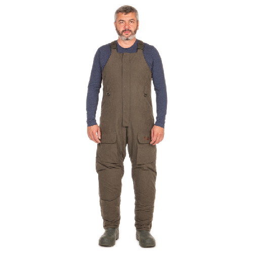 Полукомбинезон на эластичных ремнях с пластиковыми защелками, застегивается на тракторную молнию с двумя собачками. Застёжка защищена двумя ветрозащитными планками на клёпках. На комбинезоне предусмотрены два глубоких накладных кармана с анти-пыльными клапанами на клёпках.