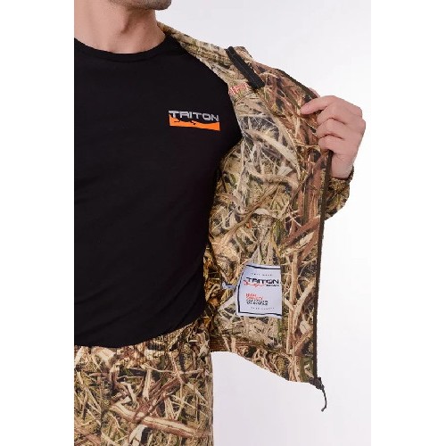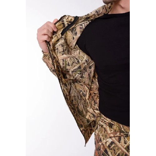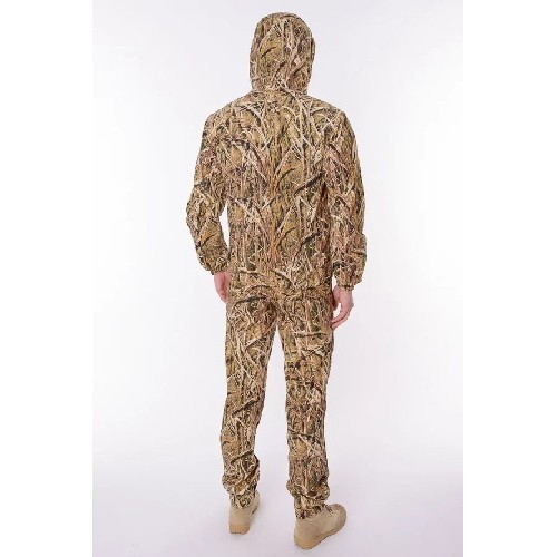 Изготовлен из ткани Сорочка (65% полиэстер, 35% хлопок), характеризующегося высокой степенью воздухопроницаемости, с минимальными показателями усадки, стойкостью к истиранию и воздействию солнечных лучей. Все это обеспечивает максимальный комфорт при носке костюма.