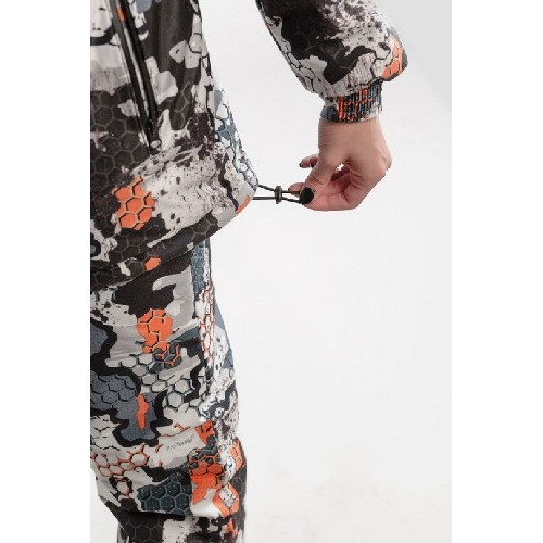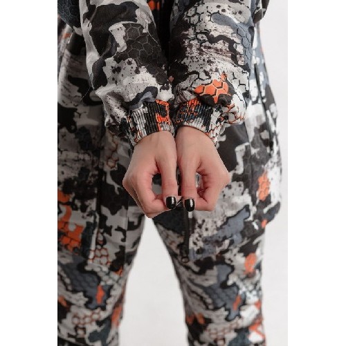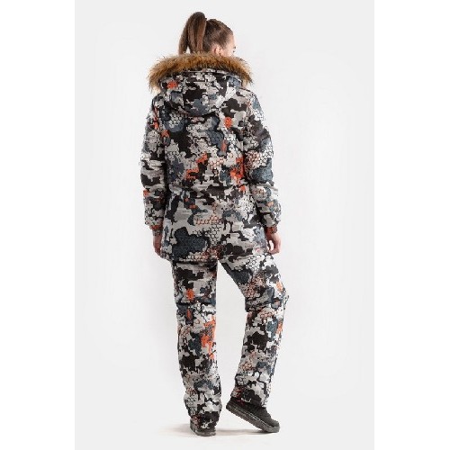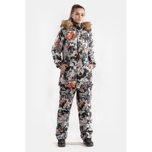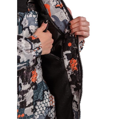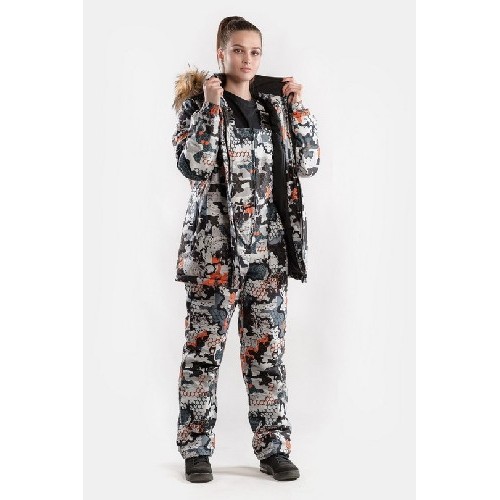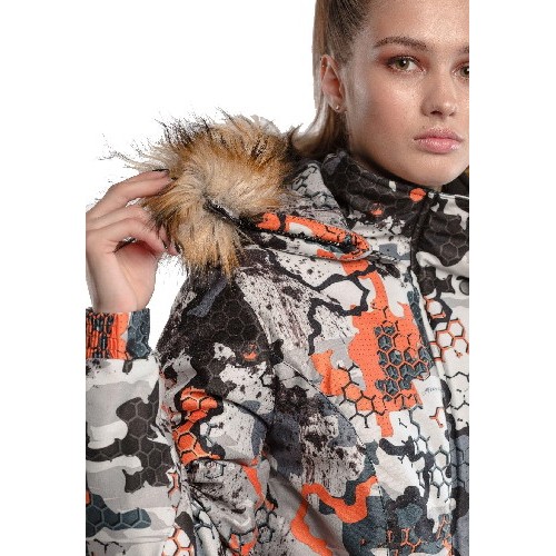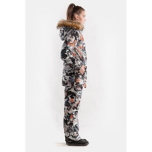 На куртке имеются три кармана: один внутренний на молнии и два нижних кармана на водонепроницаемой молнии, утепленные полибрушетом. Съемная опушка и съемный капюшон на молнии, регулируется резинкой с фиксаторами.