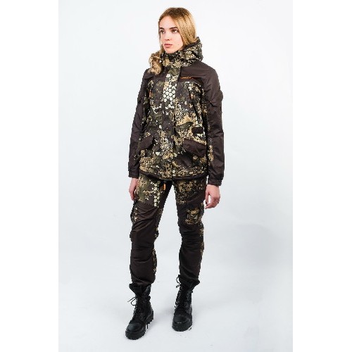 Основная ткань - с пиксельным рисунком "Triton"- который является имиджевым элементом из материала Deuspo Bonding (Дюспо) – это плотный, мягкий на ощупь, легкий материал из полиэстеровых волокон. Дюспо на трикотажной основе (Deuspo Bonding) двухслойный материал.
