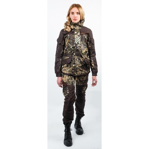По линии талии с боков, по линии локтя и по линии колена эластичные кулисы, что даёт меньший объём и в носке дополнительный комфорт костюму. Низ рукава с эластичной цельнокраёной манжетой.