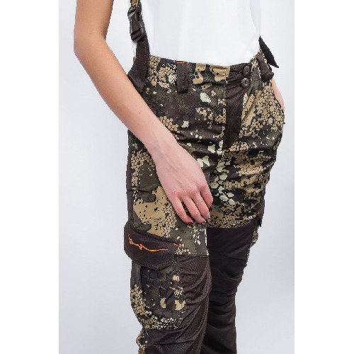 Брюки снабжены с боков двумя фиксаторами для регулировки съёмных анатомической формы эластичных лямок.