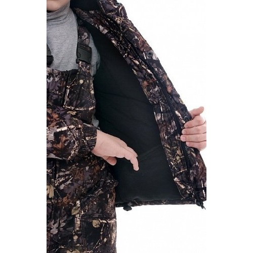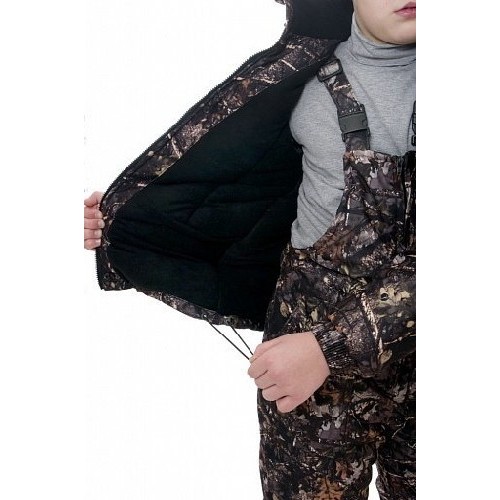 На куртке имеются 6 карманов: 2- нагрудных накладных на кнопках, 2- нижних прорезных, утепленные флисом и 2- внутренних кармана из флиса. Съемный капюшон регулируется резинкой с фиксаторами. Воротник-стойка, выполнен из флиса. Манжеты на рукавах на резинке. Не имеет манжет по низу штанин.