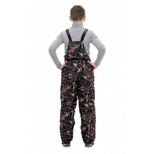 Полукомбинезон с застежкой на молнию и двумя накладными карманами, утепленными флисом.