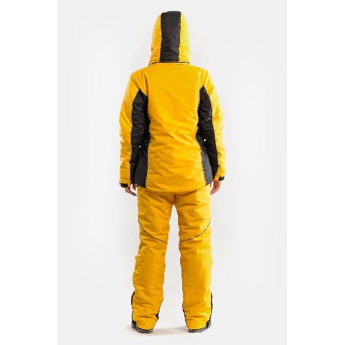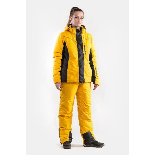 Костюм зимний женский Голд выполнен из мембранной ткани (водостойкость ткани 10000, паропроницаемость 10000) комбинированного цвета – желтый и черный, утепленный. Костюм рассчитан на эксплуатацию до -30°С.