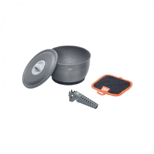 Легкий и устойчивый котелок из анодированного алюминия с радиатором на внешней части дня.