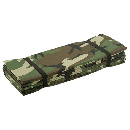 Складной туристический коврик, секции которого обшиты тканью, Такой вид "пенки" удобен для складывания, транспортирования в машине или поверх рюкзака. Камуфлированая ткань защищает коврик от грязи и повреждений. Уложенный на землю или в палатку он расстилается по поверхности без необходимости прижимать его чем - либо. Собирается быстро. Обладает прекрасными теплоизолирующими свойствами. В сложенном состоянии коврик фиксируется торцевыми хлястиками.
