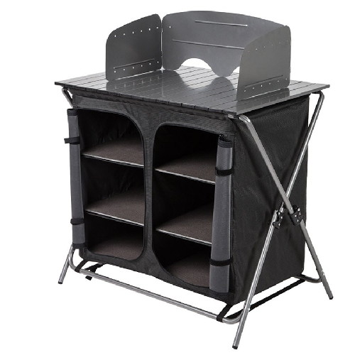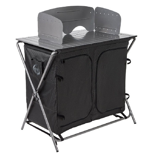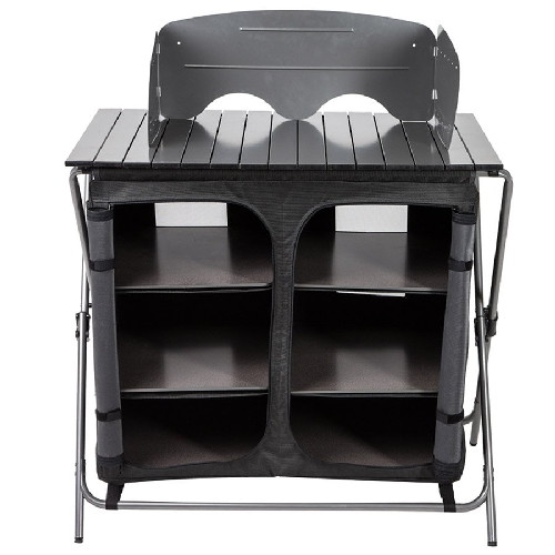 Мы предусмотрели все: простота установки, надежный, устойчивый каркас, стенка, защищающая от ветра во время готовки, большой рабочий стол со специальным алюминиевым покрытием легко моется и с большим запасом прочности. Под рабочей поверхностью стола удобные полки для хранения продуктов и кухонной утвари.