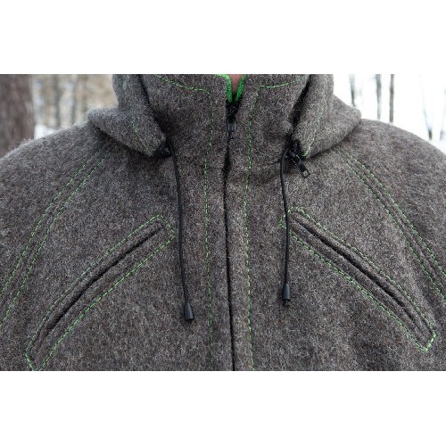 Сукно - это полностью натуральный материал - 100% валянная шерсть. Материал обладает великолепными характеристиками. Он теплый, слабо намокает и промокает, не горит! При этом этот материал очень хорошо дышит, что особенно важно на ходовой охоте, где если вспотеешь, значит замерзнешь.