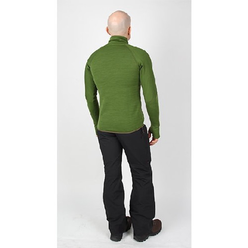 Высокий воротник-стойка с защитой подбородка от замка молнии плотно охватывает шею. Удлиненные рукава-реглан имеют отверстие под большой палец, что служит барьером от снега и ветра и не дает рукавам сбиваться под ветрозащитной курткой или при активном движении.