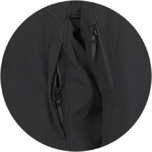 на обоих плечах карманы, мешковина из сетки, область вблизи молнии усилена неутепленным софтшеллом;