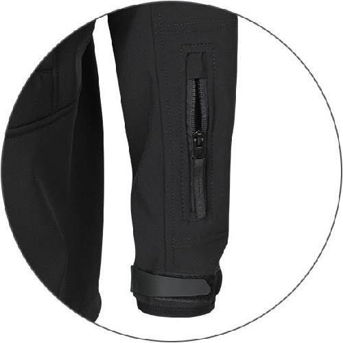 - Центральная молния куртки двухзамковая (можно расстегнуть снизу), с изнанки по всей длине прикрыта ветрозащитной планкой.