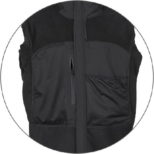 Расположение нагрудных карманов позволяет пользоваться ими при надетом поверх нагруднике или бронежилете. Мешковина карманов из неутепленного софтшелла для прочности и защиты от ветра. Внутри имеются кармашки для мелочей, слева три средних (подходят под фонари, мультитулы, пистолетные магазины, небольшие мобильные телефоны и т.д.), справа три различной ширины - широкий, средний и узкий.