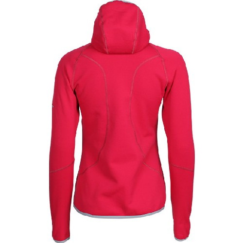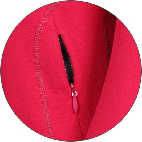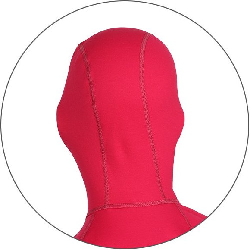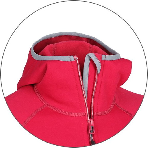 Удобный облегающий капюшон окантован эластичной тесьмой. Высокий воротник-стойка с защитой подбородка от замка молнии плотно охватывает шею. Удлиненные рукава имеют отверстие под большой палец, что служит барьером от снега и ветра и не дает рукавам сбиваться под внешней курткой. "Плоский" способ формирования карманов обусловлен соображениями удобства – карманы не будут мешать под верхней одеждой. Благодаря сетчатым мешковинам, карманы могут использоваться для вентиляции.