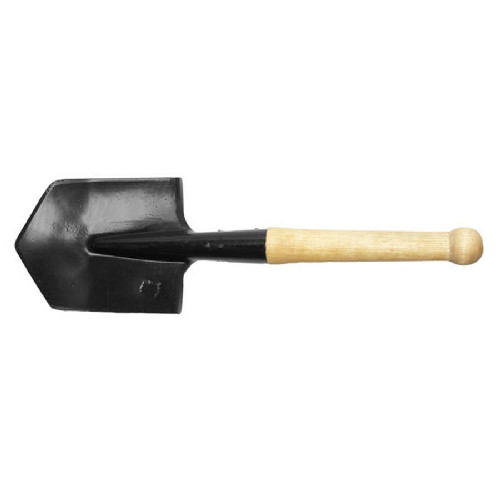 Штык стальной, окрашенный в черный цвет. Крепится к рукояти двумя шурупами. Рукоять из древесины, неокрашенная.