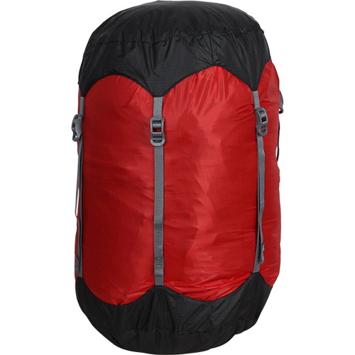 «Компрессионник» утягивается шестью стропами (ширина строп – 20мм), что позволяет увеличить компрессию и добиться минимального объема упаковки. Стропы защелкиваются трехщелевыми пряжками Duraflex® . Область выхода шнура усилена тесьмой для защиты ткани от разрывов.