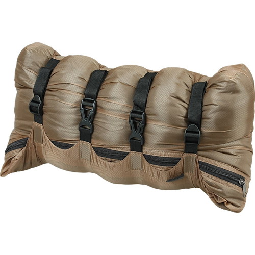 Расположение утяжек, продольная молния, облегчающая аккуратную укладку, и форма мешка позволяют использовать его в качестве удобной подушки.
