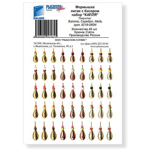 Мормышка изготовлена из свинца марки С2 который по удельному весу очень близок к порошковому вольфраму. Качественный крючок фирмы Cobra, оснащенный бисером. Силиконовая трубочка в теле мормышки, которая предотвращает повреждения и обрыв лески под нагрузкой.