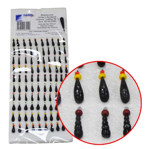 Мормышки Россия Уралка с бисер. разм.1 набор 100 шт
