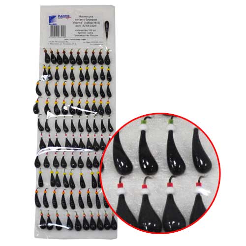 Мормышки Россия Уралка с бисер. разм.5 набор 100 шт