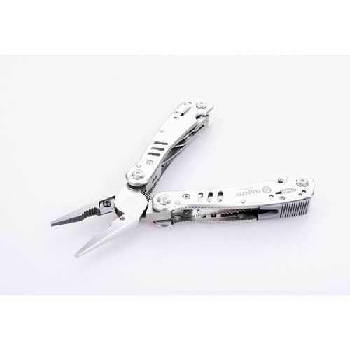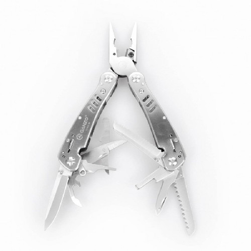 Главный по принципу расположения инструмент мультитула — это плоскогубцы. Они также наделены функцией кусачек и возможностью крепкого захвата гаек, втулок и других круглых в сечении предметов. Остальные инструменты распределены между двумя рукоятками мультитула и размещены внутри них. Это два ножа (обычный и серрейторный), пила, открывалки для консервов и бутылок, ножницы, шило, небольшая отвертка с прямым шлицем, магнитный держатель для сменных бит, инструмент для снятия с проводов изоляции. Вместе с мультитулом продается и набор необходимых для работы с различными винтами и шурупами отверток. Они размещены в одном общем органайзере. Этот органайзер вместе с мультитулом может храниться в одном нейлоновом чехле.