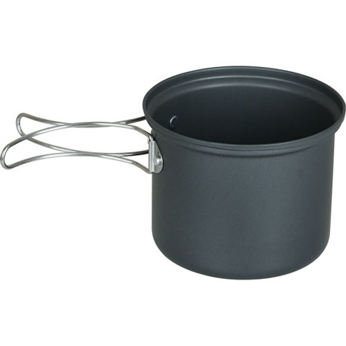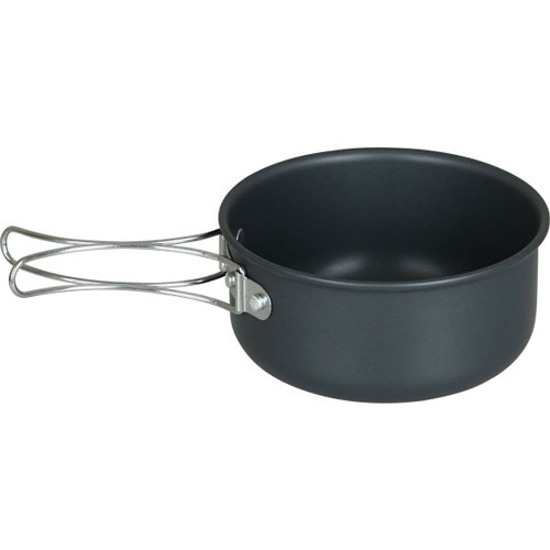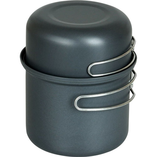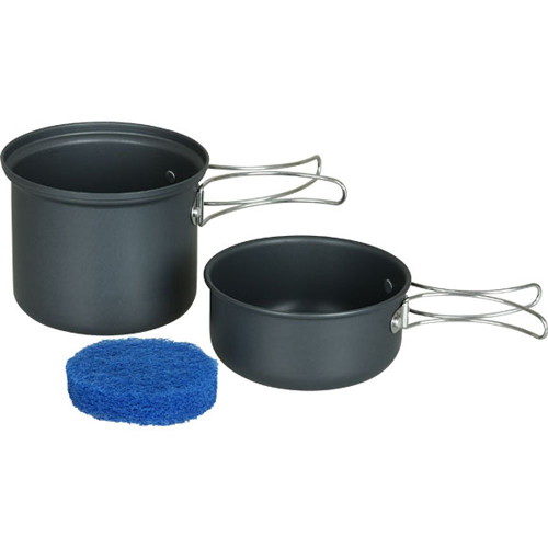 Две кастрюли из анодированного алюминия, которые одновременно могут служить кружками и мисками. Анодированный алюминий — это алюминий со специальным покрытием, получаемым электролитическим способом, которое защищает от окисления и служит защитой от механических повреждений. Анодированная посуда сохраняет обычные для алюминиевой посуды легкость и быстроту прогрева, не ухудшая вкуса приготовленной еды.